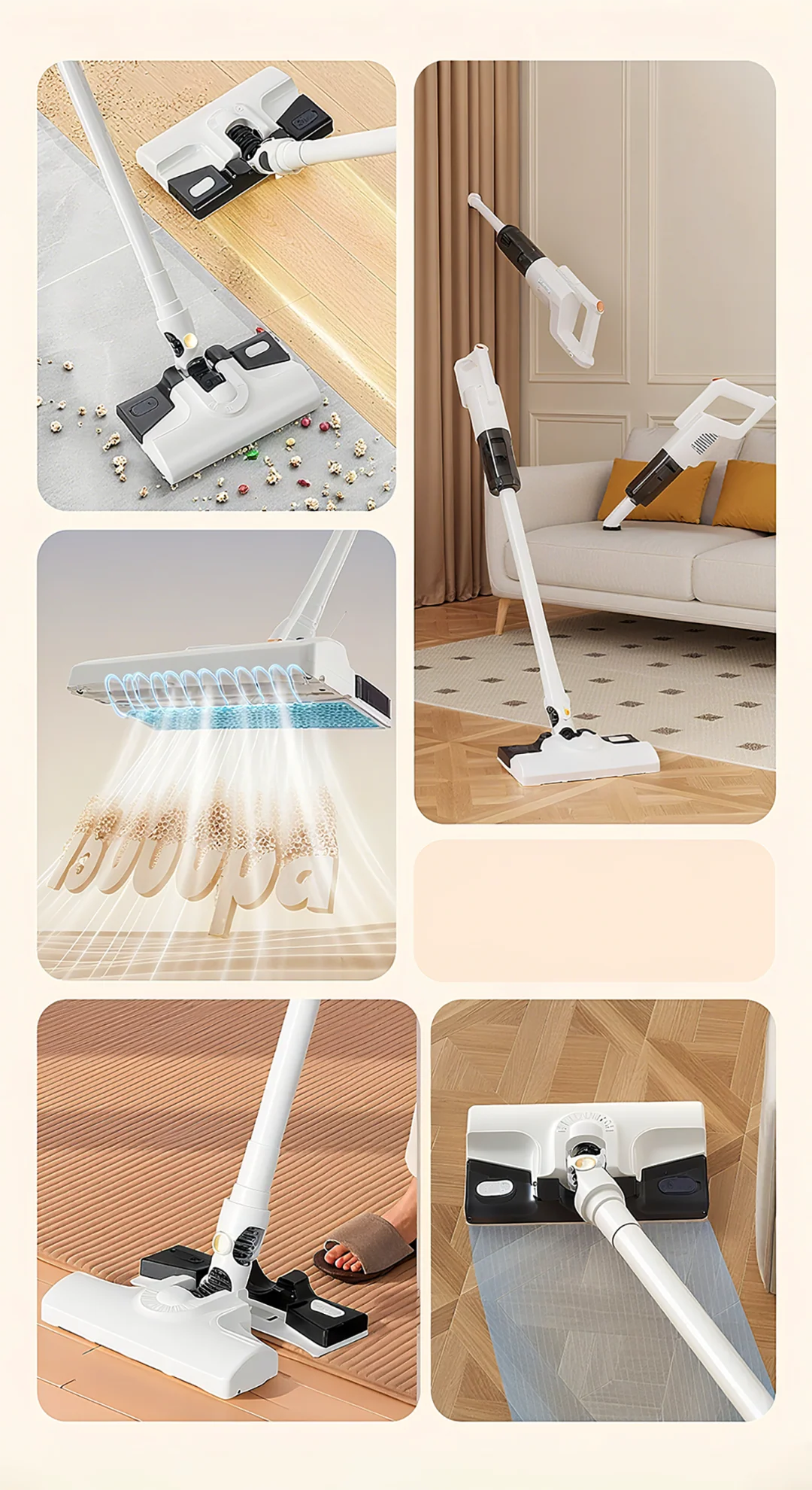 El rodillo húmedo motorizado se encarga de eliminar líquidos, residuos y manchas difíciles, extrayéndolos continuamente del rodillo con cada pasada. Con la capacidad de limpiar hasta 160 m² con cada depósito lleno de agua, este innovador sistema redefine la forma de abordar la limpieza de tus suelos, garantizando resultados impecables en cada rincón del hogar.